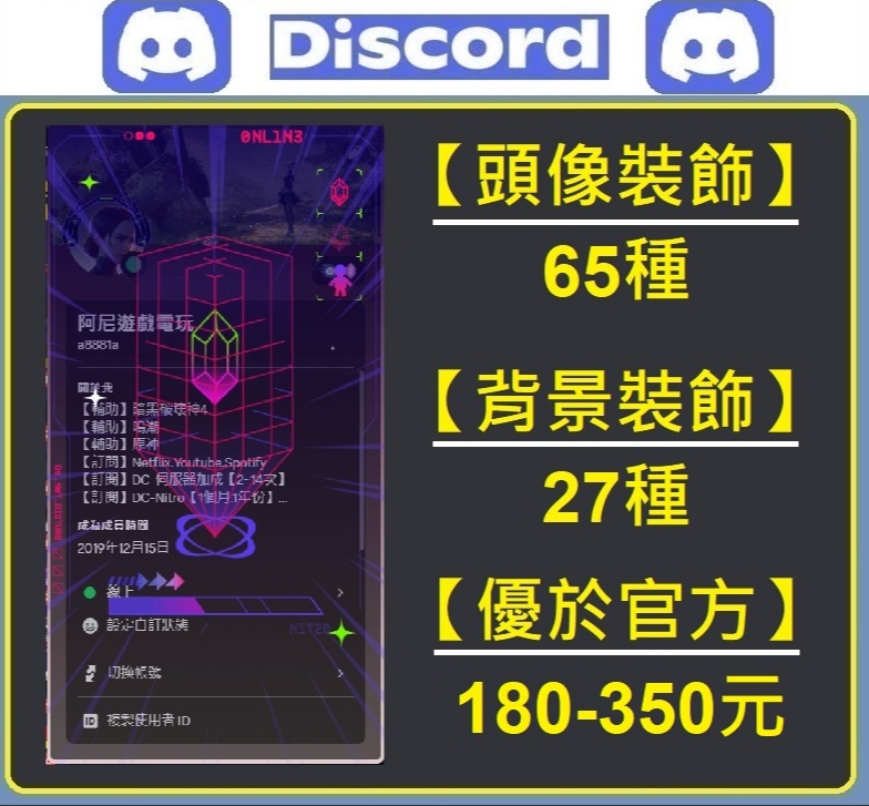 Discord頭像裝飾背景裝飾伺服器加成2-14次Discord Nitro贈禮連結